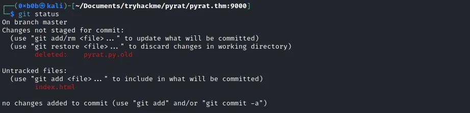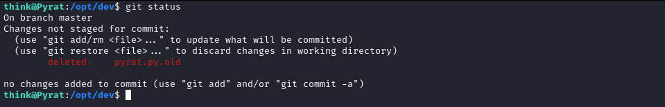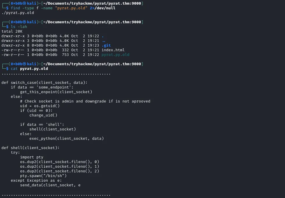 And start to analyze it. As mentioned before, a file has been deleted. The `pyrat.py.old`.&#x20;